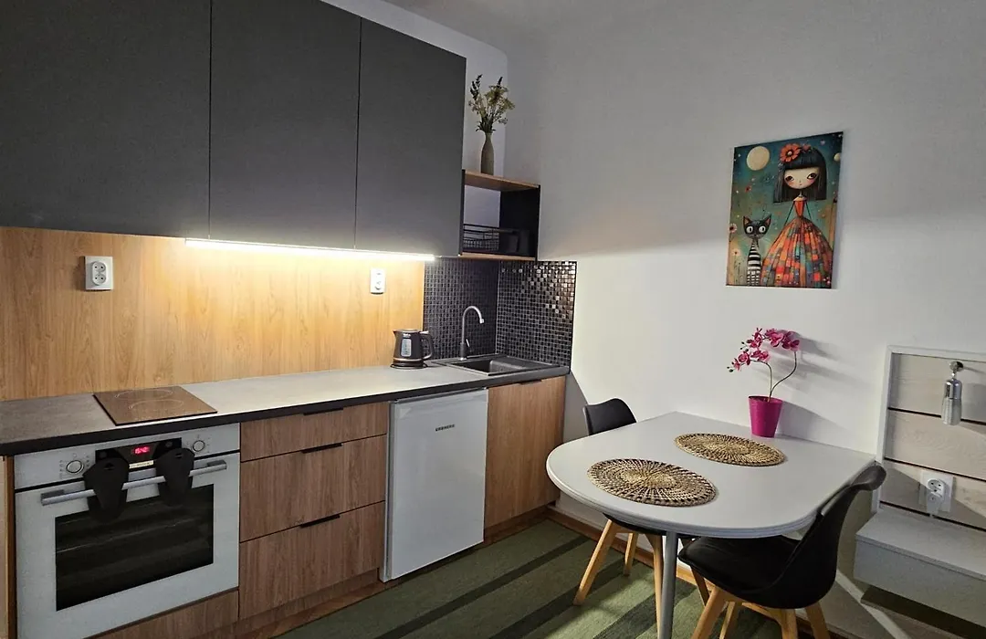 Eine Küchenzeile ist im Apartament Plac Mirowski Centrum ebenso vorhanden wie ein Toaster und ein Herd darauf. Dieses Apartment liegt in der Nähe der U-Bahn-Station Ratusz Arsenal, und zwar rund 10 Gehminuten entfernt.
